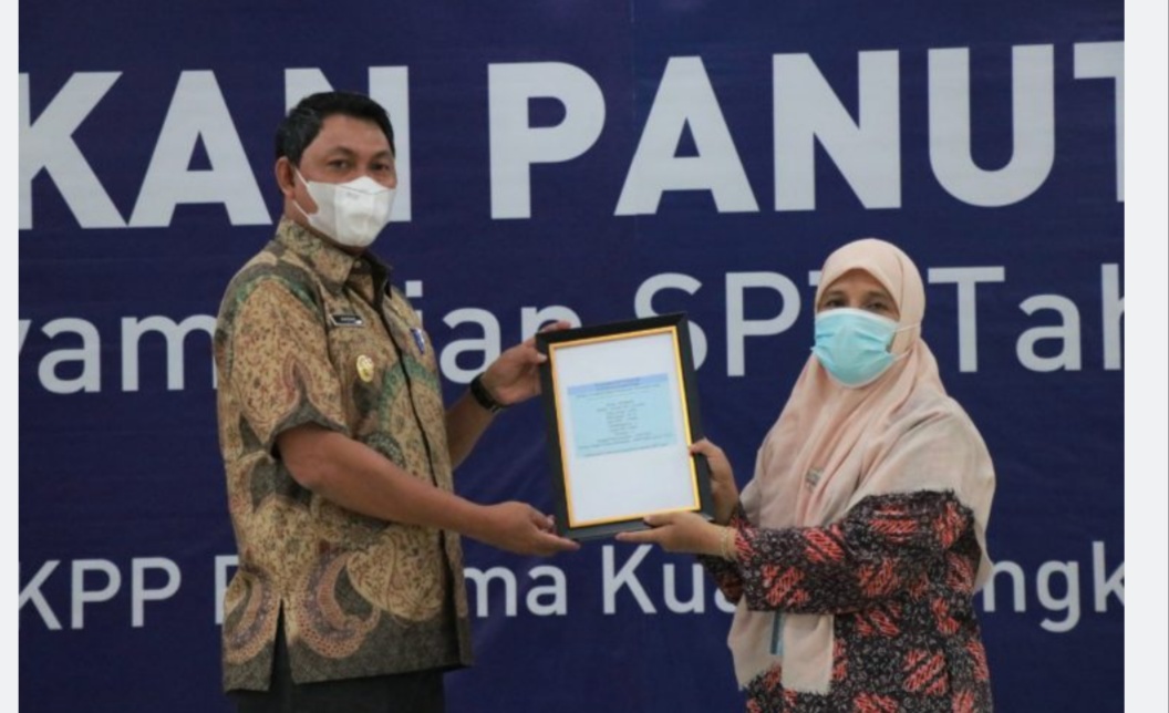 Selanjutnya acara ditutup dengan penyerahan bukti lapor SPT tahunan dan plakat dari kpp pratama kuala tungkal kepada wakil bupati Tanjab Barat. (gus)
