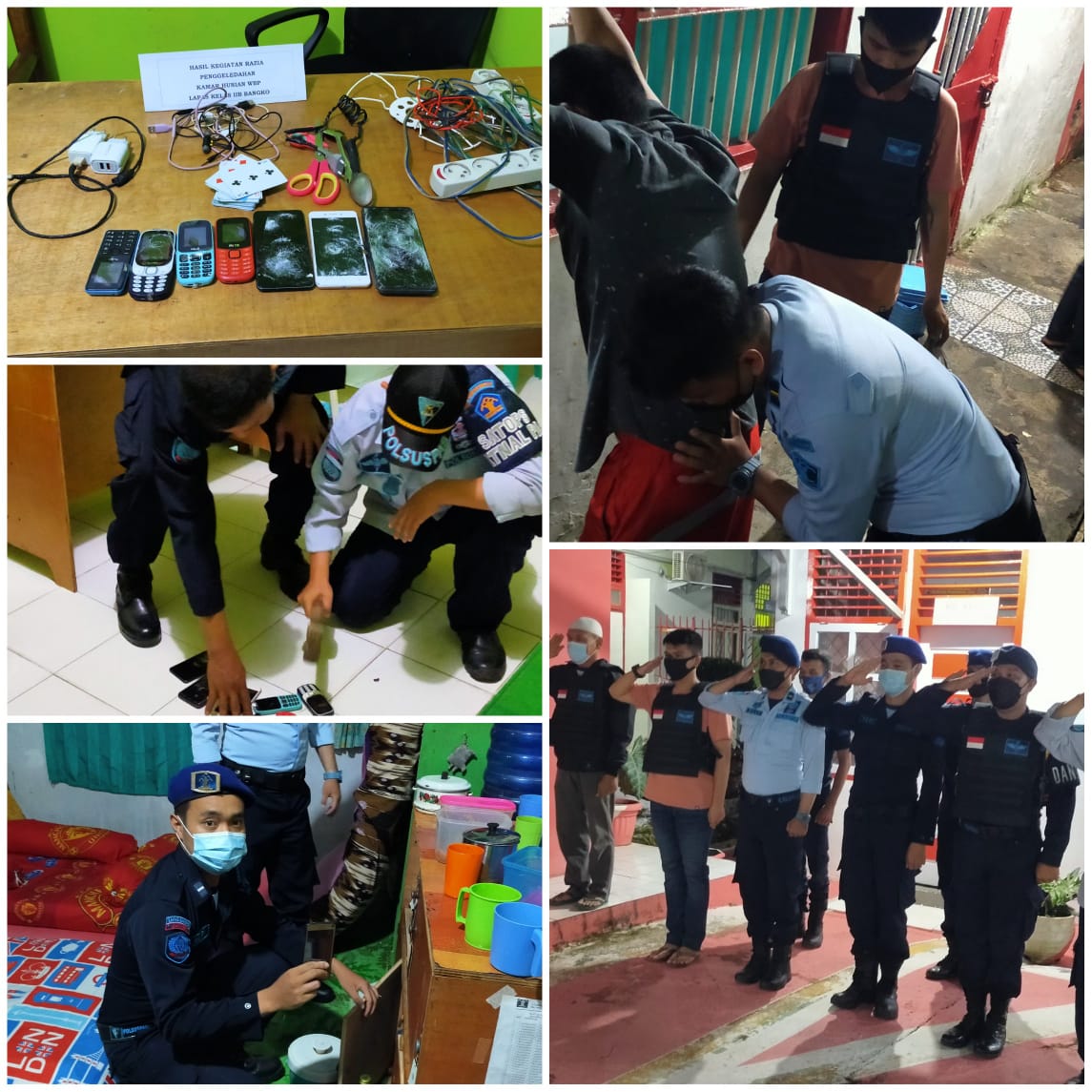 Razia ke blok hunian Lapas yang dipimpin oleh Kalapas Bangko Erwan Prasetyo beserta Satuan Operasional Kepatuhan Internal Pemasyarakatan (SATOPS PATNAL PAS) ,Sabtu malam(1/5/2021).