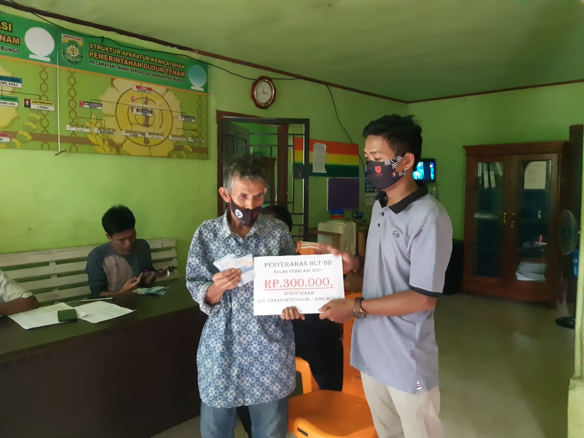 TOPIK BUNGO, – Bertempat di aula Kantor Dusun Tenam, Kecamatan Tanah Sepenggal, Bantuan Langsung Tunai (BLT) Dana Desa (DD) tahap II tahun anggaran 2021 Dusun Tenam disalurkan. Sabtu (08 Mei 2021).