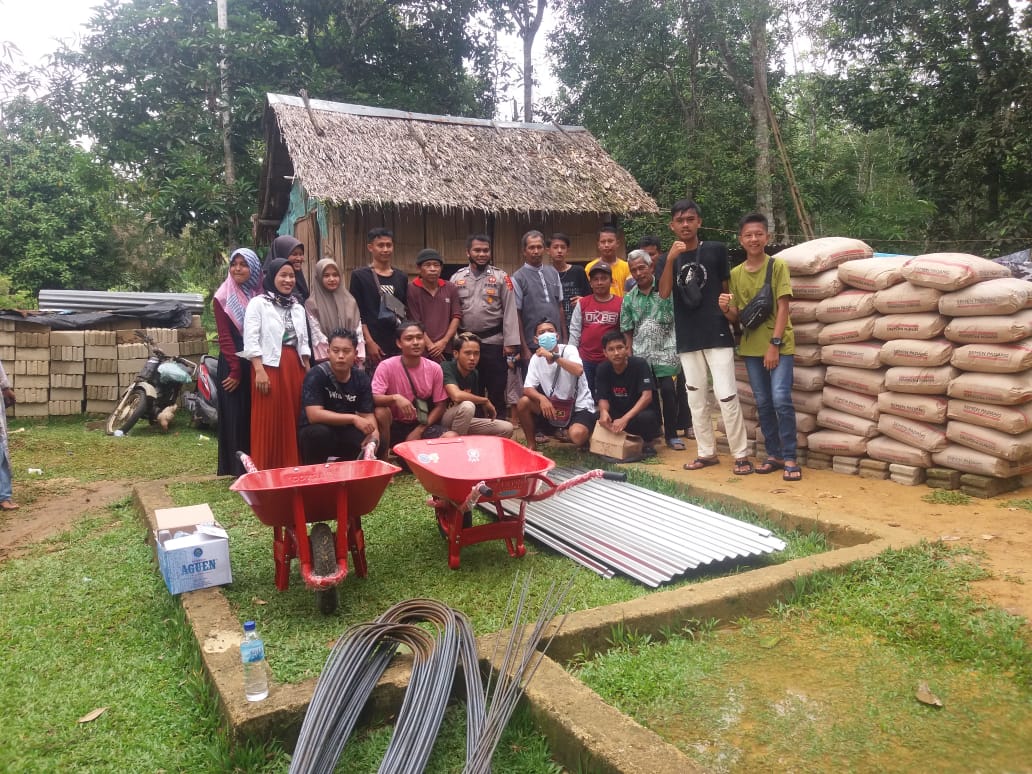 Brigpol Maidani saat dibincangi ketika hadir mendapingi material tersebut secara langsung menyebutkan, pembangunan rumah pak Mahmud mulai hari ini digeber material nya ke alamat.