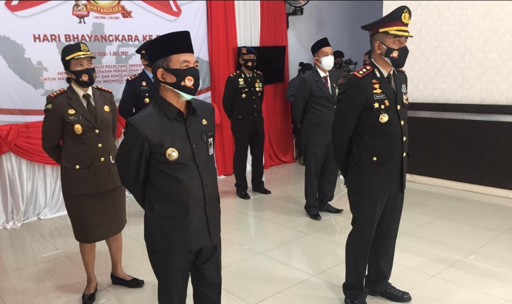 Merangin – Upacara Hari Ulang Tahun (HUT) Bhayangkara ke-75 yang dipimpin Presiden Republik Indonesia Joko Widodo (Jokowi), secara virtual di Kabupaten Merangin berlangsung khidmat.