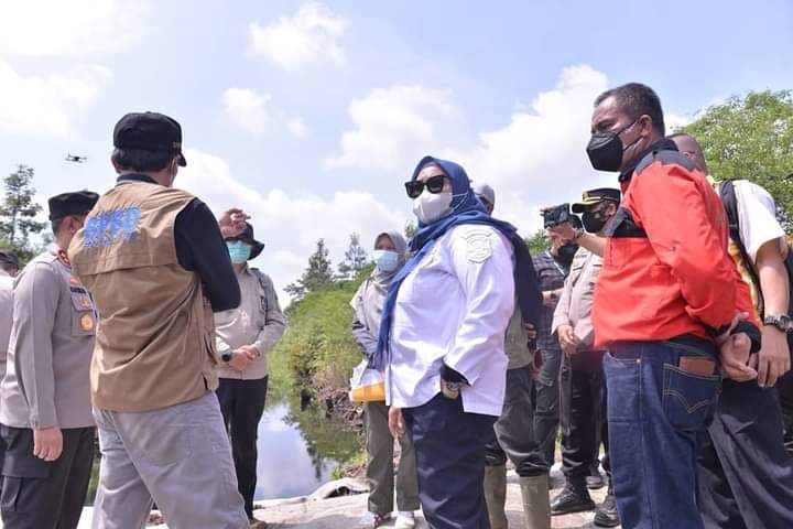 Pada kesempatan ini bupati Muarojambi Hj.Masnah Busro, SE. M.Tr.IP. menyampaikan terima kasih kepada Kapoldajambi, ketua DPRD Propinsi Jambi Dandim 0415 Jambi dan rombongan yang berkunjung dan meninjau langsung ke kecamatan Kumpeh yang merupakan salah satu daerah yang rawan Karhutla di wilayah kabupaten Muarojambi, apresiasi yang sangat tinggi saya sampaikan kepada Tim gabungan yang telah bekerja keras tanpa mengenal lelah selalu siaga dalam mencegah kebakaran hutan.(aq)
