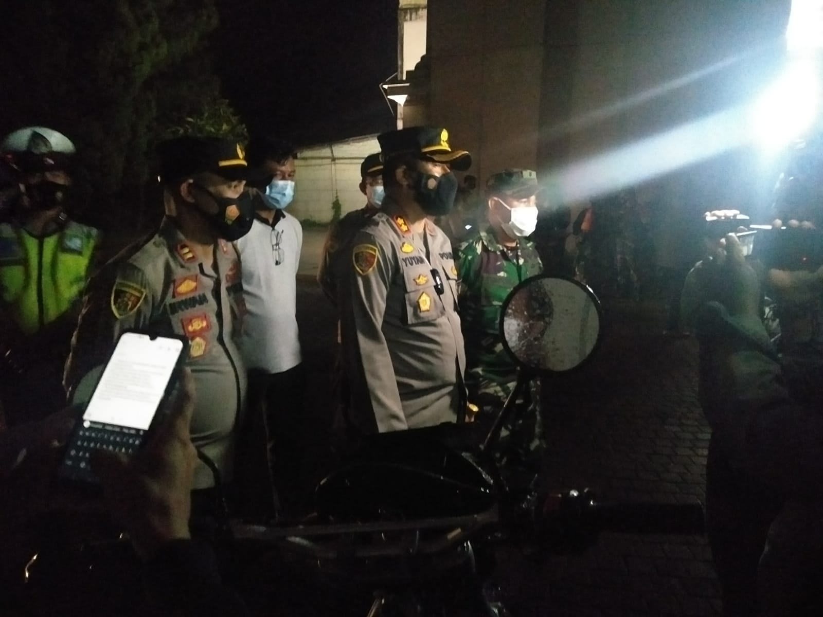 MUARO JAMBI.-Kapolres Muaro Jambi AKBP . Yuyan Priatmaja SIK MH,pimpin pelaksanaan apel serentak patroli skala besar ,sekaligus pemberian sembako kepada masyarakat, bertempat di Citra raya city Jambi luar kota,23/07/21 Malam
