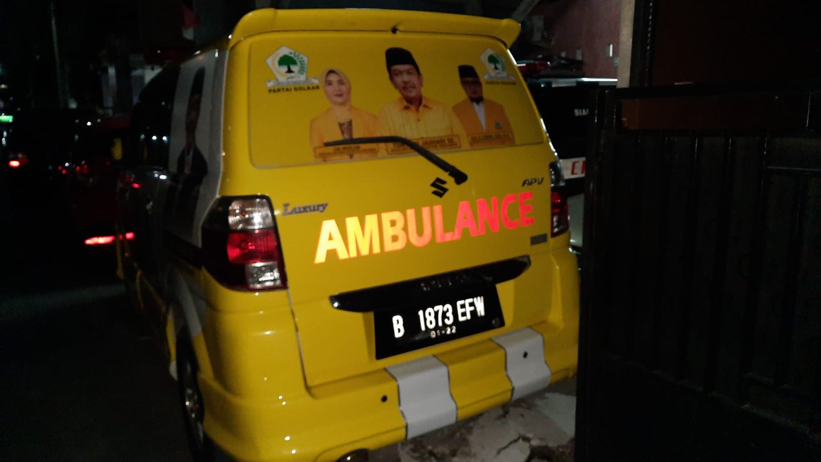 Tidak hanya berwarna kuning saja, tetapi di body mobil minibus jenis APV Luxury dengan nopol F 1873 EFW itu juga terdapat logo partai serta Poto ketua Umum partai Golkar dan ketua DPD I Golkar Provinsi serta Poto dirinya hingga pengurus DPD II Golkar Sarolangun.