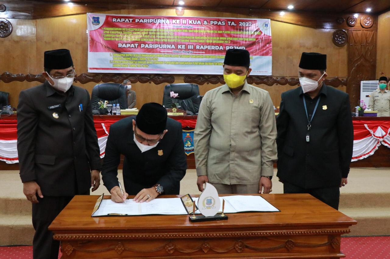 “Saya mengucapkan terimakasih kepada unsur pimpinan dan anggota DPRD Bupati atas kerja kerasnya terutama Badan Anggaran DPRD bersama TAPD dalam melakukan pembahasan dan kajian yang mendalam terhadap KUA dan PPAS Tahun Anggaran 2022,” ucapnya.