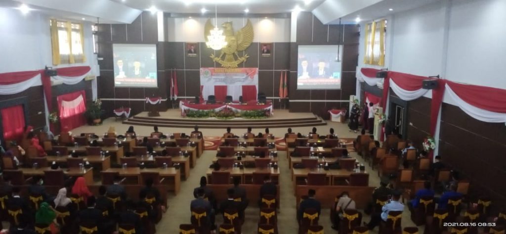 Acara di gelar diruang aula gedung DPRD Tebo secara virtual dan mematuhi protokoler kesehatan sekaligus menyaksikan secara langsung pidato Presiden, Pimpinan DPD RI, DPR RI serta para unsur Gubernur dan Bupati se- kabupaten kota.
