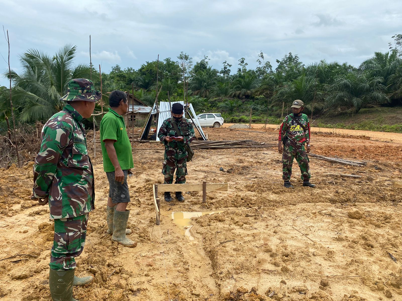 Tak cuma itu, satgas juga mulai bergerak membuat pondasi dan merangkai besi untuk pembangunan rumah untuk guru honor di lokasi TMMD. Meski cuaca tidak mendukung tapi satgas tetap semangat.