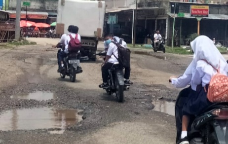“Warga harus hati-hati karna kerusakan jalan tersebut pas di persimpangan, dan ada juga di dekat pasar” tambahnya