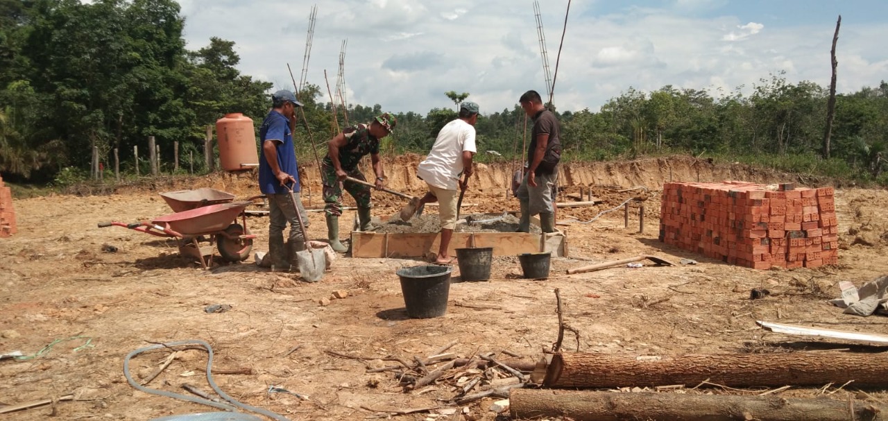Warga Bersama Satgas TMMD, Gotong Royong Bangun Rumah Guru Honor