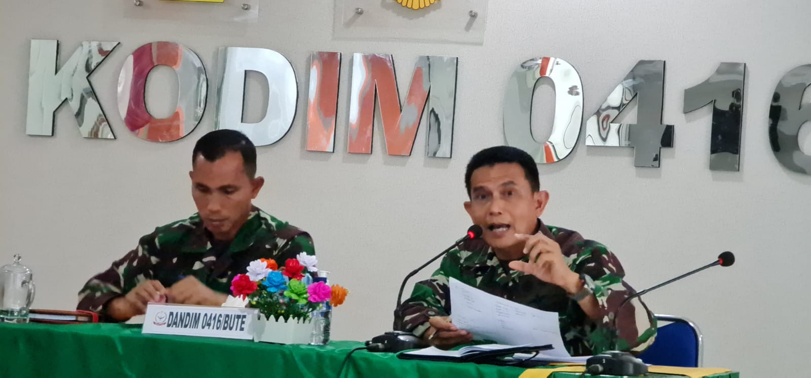 Tampak hadir, Dandim 0416/Bute, Letkol Inf Arianto Maskare Subagio, Kasdim Mayor Inf Herman Nursali, Pabung Dim Bute, Mayor Inf Toni Wijaya, Perwira Staf dan seluruh Danramil.