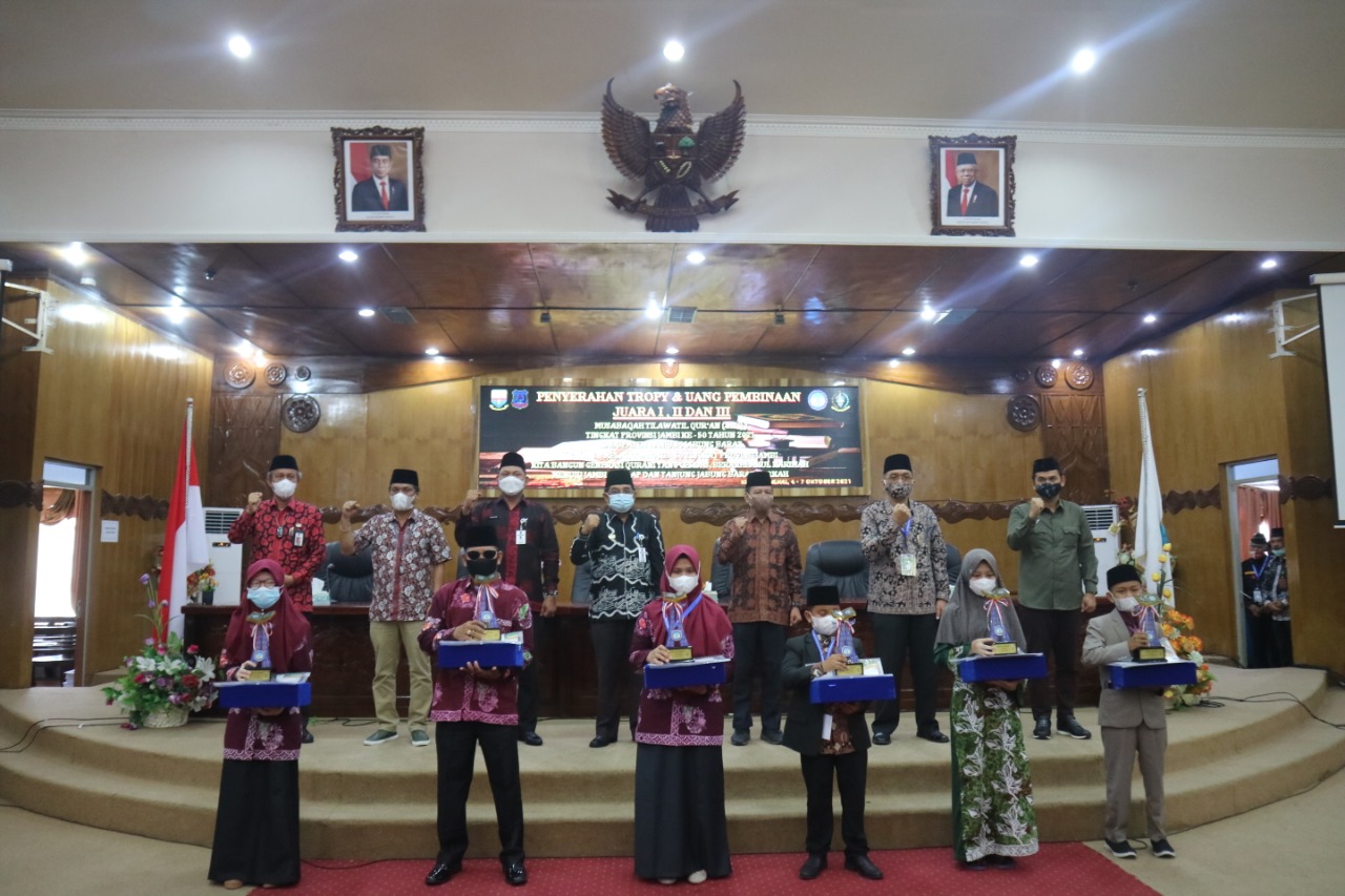 topikjambi.id,- Bupati Tanjung Jabung Barat, Drs. H. Anwar Sadat M. Ag serahkan secara simbolis penghargaan kepada para Pemenang cabang perlombaan MTQ Ke 50 tingkat Provinsi Jambi di Kabupaten Tanjab Barat, Bertempat di Ruang Rapat Paripurna DPRD, Kamis (07/10/2021).