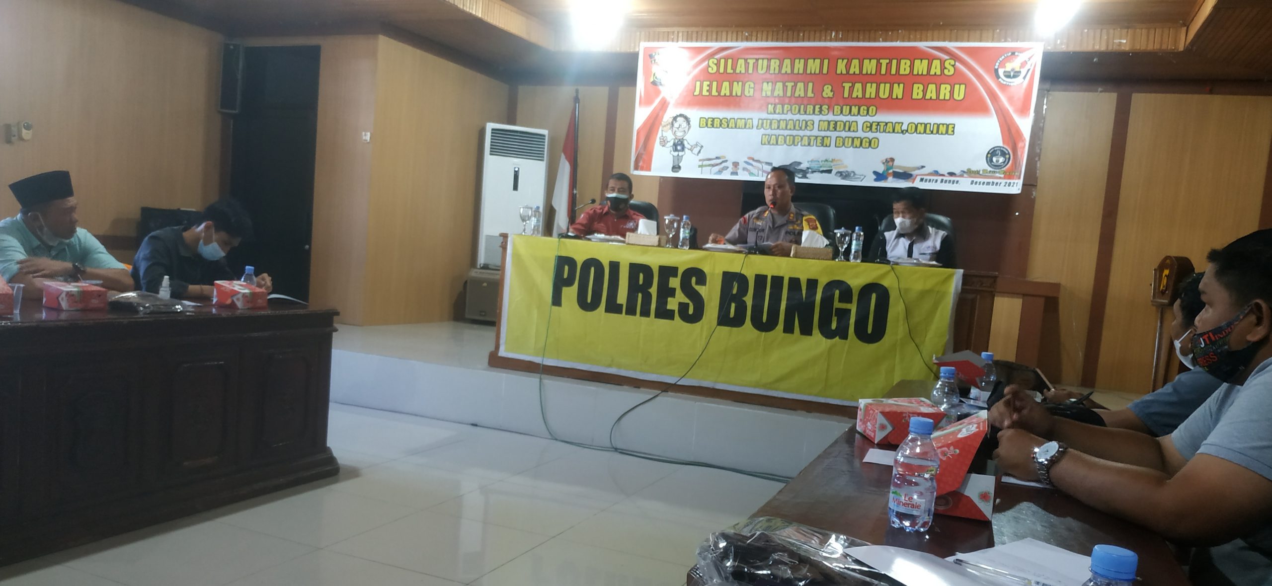 TOPIK BUNGO – Silaturahmi bersama insan pers yang ada di Bungo di Aula Mapolres. Kapolres Bungo, AKBP Guntur Saputro sampaikan kabar baik terkait pencapaian vaksinasi.