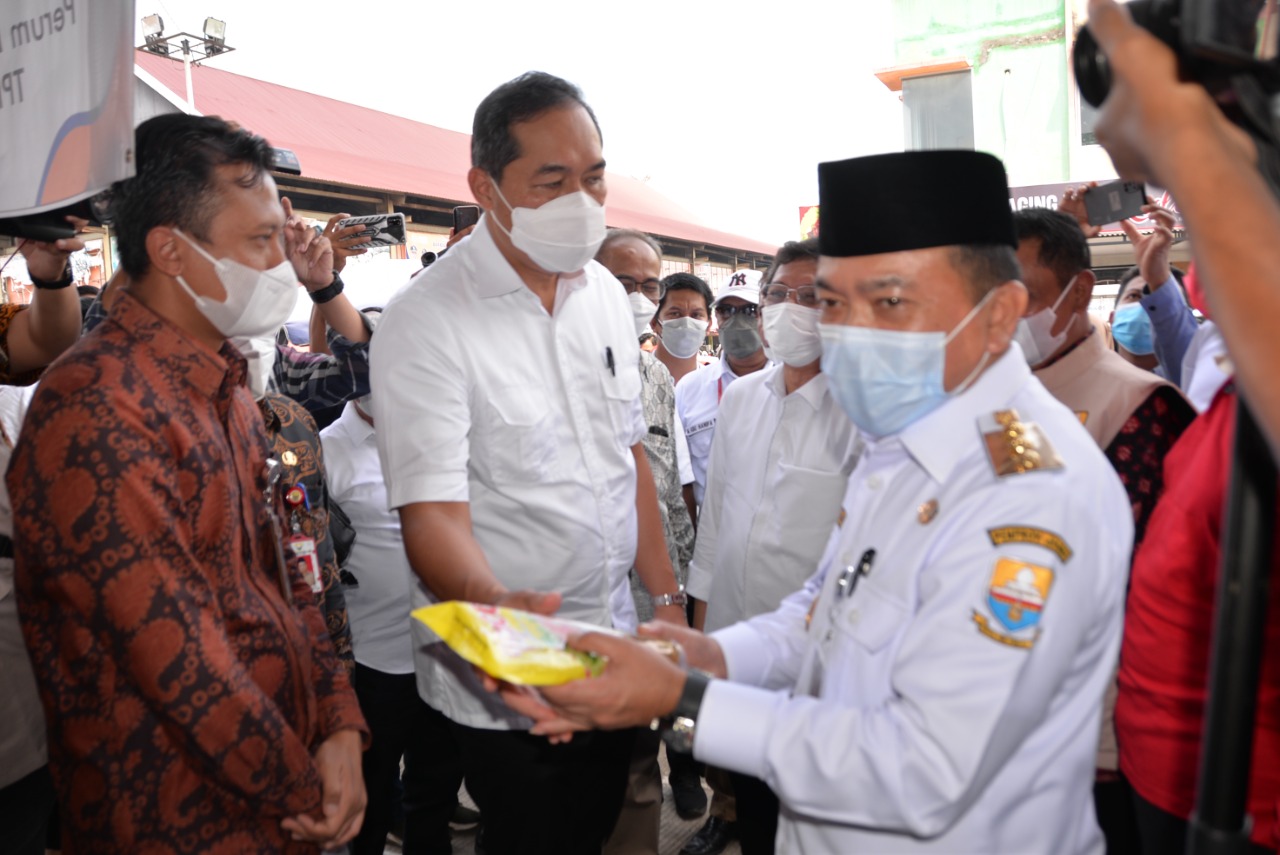 Jambi – Gubernur Jambi, Dr.H.Al Haris,S.Sos.,M.H., mendampingi Menteri Perdagangan RI, Muhammad Lutfi melakukan peninjauan Pasar Modern Angso Duo untuk mengecek secara langsung terkait permasalahan minyak sayur yang terjadi beberapa minggu terakhir dibeberapa daerah termasuk Provinsi Jambi, Jum’at (25/02/22).