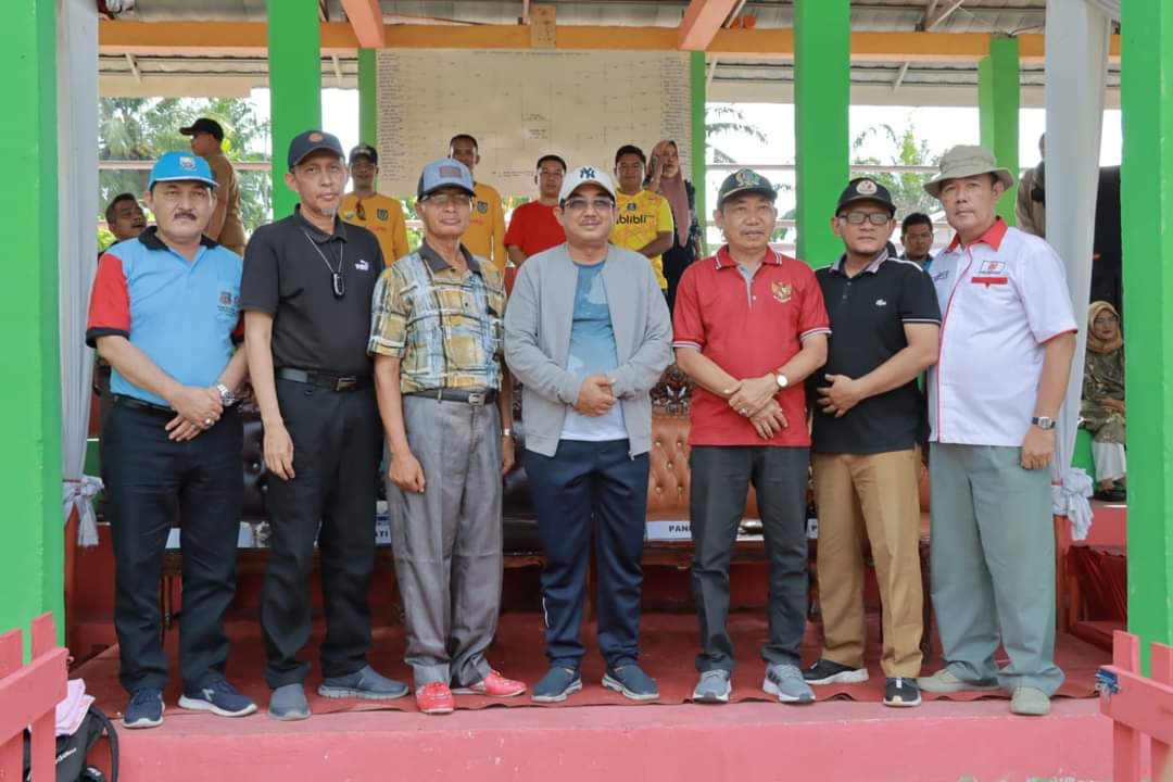 Pertandingan pembuka antara Tim Sekretariat DPRD Kabupaten Tanjabbar berhadapan dengan APDESI Kecamatan Batang Asam.
