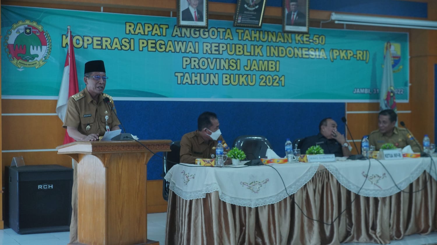 Jambi – Wakil Gubernur Jambi, Drs.H.Abdullah Sani,M.Pd.I menyatakan, Rapat Anggota Tahunan (RAT) merupakan suatu momentum untuk melakukan evaluasi dan control terhadap kepengurusan koperasi. Hal tersebut dinyatakan Sani saat membuka RAT Pusat Koperasi Pegawai Republik Indonesia (PKP RI) Provinsi Jambi, bertempat di Aula Gedung Dinas Perkebunan Provinsi Jambi, Selasa (31/05/2022).