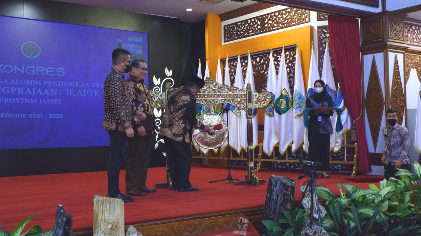 Jambi – Wakil Gubernur Jambi, Drs.H.Abdullah Sani,M.Pd.I., mengharapkan, Ikatan Keluarga Alumni Pendidikan Tinggi Kepamongprajaan (IKAPTK) Provinsi Jambi turut memberikan kontribusi dalam membangun Provinsi Jambi. Hal tersebut disampaikan Sani saat membuka Kongres IKAPTK Provinsi Jambi dalam rangka Pemilihan Ketua IKAPTK Periode 2022-2027, bertempat di Auditorium Rumah Dinas Gubernur Jambi, Kamis (16/06/2022).
