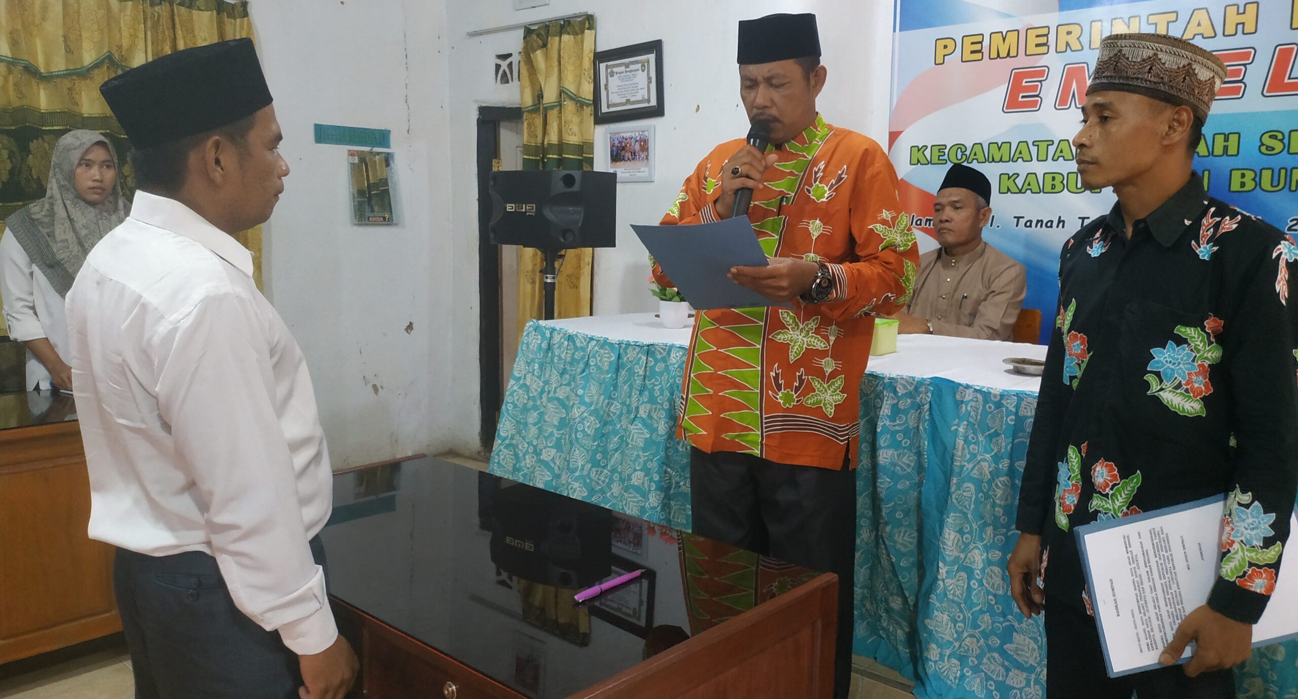 Pelantikan di gelar di aula Kantor Rio Dusun Empelu, di hadiri oleh Sekcam Tanah Sepenggal, Rio Empelu, BPD, Sekdus, Pegawai sara’ perangkat Dusun dan undangan lainnya.