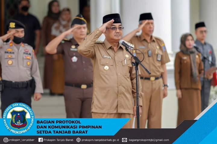 Bupati Tanjung Jabung Barat, Drs. H. Anwar Sadat, M. Ag dalam hal ini bertindak sebagai Inspektur Upacara Haornas tahun 2022 yang mengusung tema Bersama Cetak Juara.