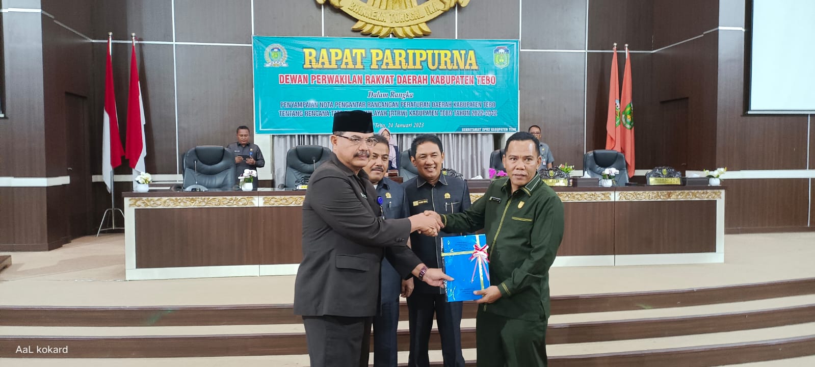 Muara Tebo,topikjambi.id-dewan perwakilan rakyat daerah kabupaten tebo gelar rapat paripurna dalam rangka penyampaian nota pengantar rancangan peraturan daerah kabupaten tebo tentang rencana tata ruang wilayah(RTRW) tahun 2022-2042.