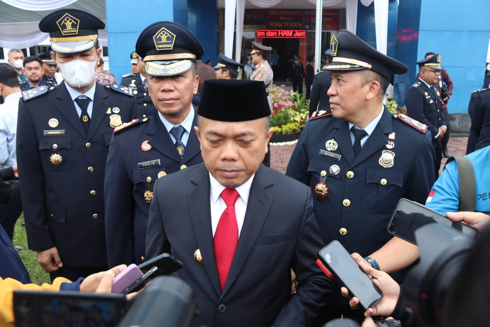 Jambi – Gubernur Jambi Dr.H.Al Haris,S.Sos.,M.H., memberikan apresiasi terhadap kinerja pihak imigrasi Provinsi Jambi yang telah banyak membantu masyarakat. Hal ini disampaikan Al Haris dalam sesi wawancara usai menjadi inspektur upacara pada acara Hari Bhakti ke 73 Imigrasi Tahun 2023, bertempat di Halaman Kantor Wilayah Kementerian Hukum dan Hak Asasi Manusia (Kanwil Kemenkumham) Provinsi Jambi, Kamis (26/01/2023).