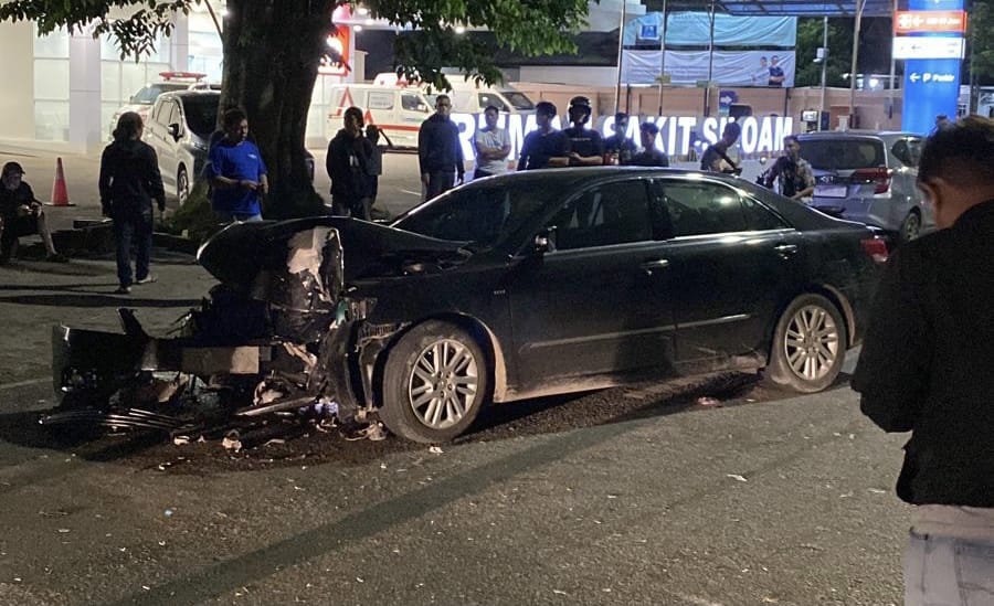 “Katanya sempat dikejar orang, jadi nabrak pohon dulu abis itu menabrak tiang reklame. Mobil sedan itu putar arah dan mengenai mobil saya yang sedang parkir,” ujar pemilik mobil Calya ini.