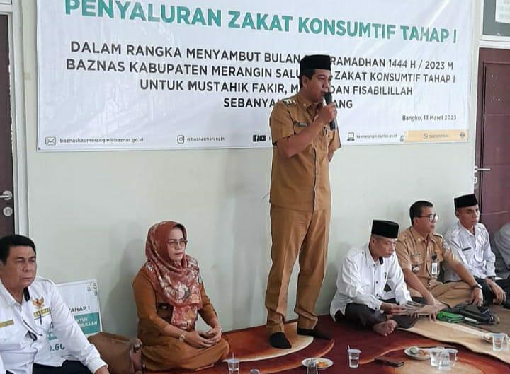 Merangin – Wabup Merangin Nilwan Yahya menyalurkan zakat konsumtif tahap satu, untuk 9.083 orang Mustahik Fakir, Miskin dan Fisabilillah. Penyaluran zakat konsumtif tersebut, berlangsung di Sekretariat Baznas Merangin, Senin (13/3).