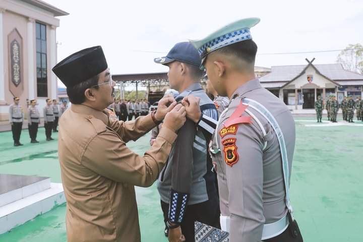 Bupati Tanjung Jabung Barat, Drs. H. Anwar Sadat, M.Ag pimpin apel gelar pasukan Operasi Ketupat tahun 2023 yang dilaksanakan di halaman Mapolres Tanjung Jabung Barat. Senin (17/4).