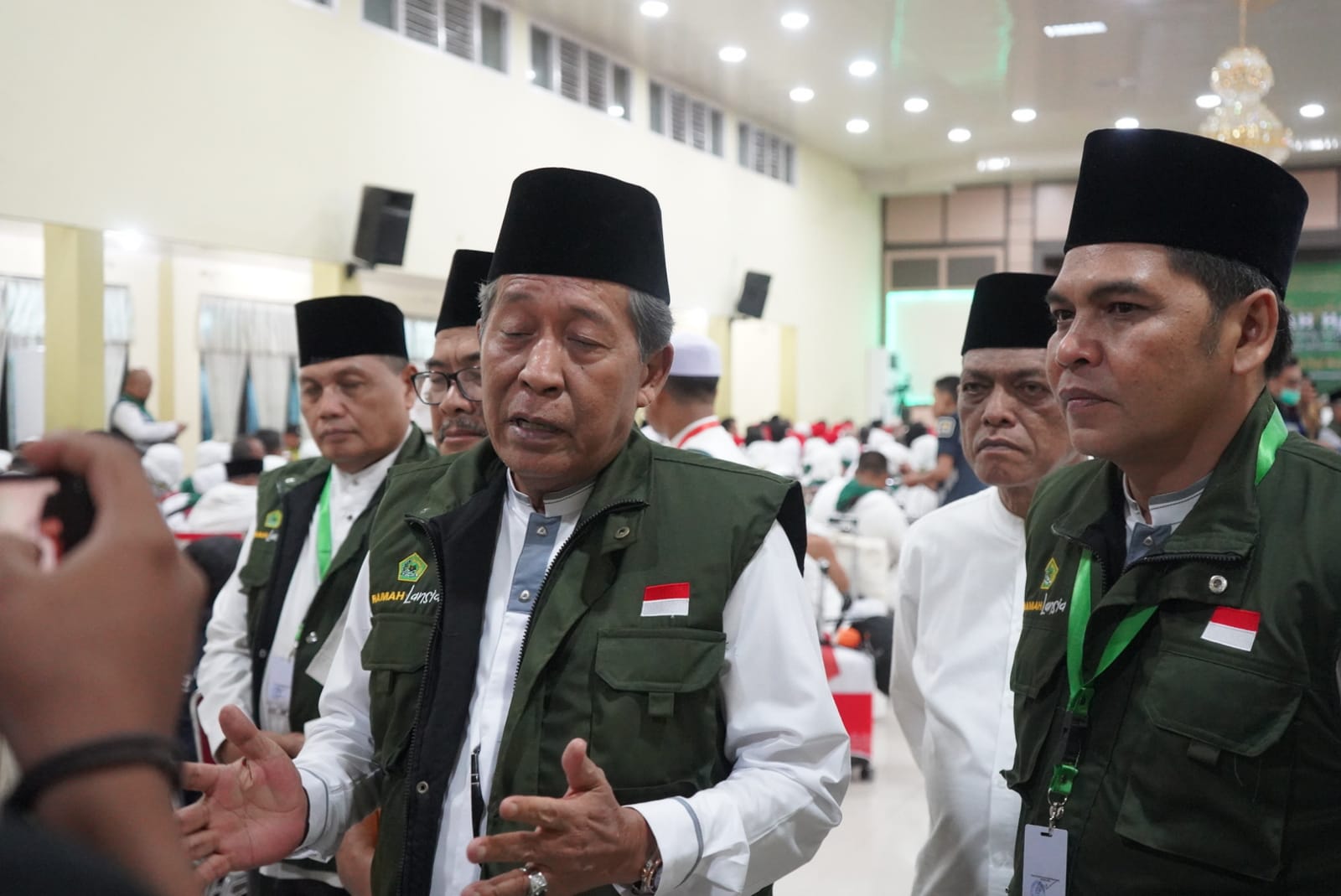 Jambi – Wakil Gubenur (Wagub) Jambi Drs. H. Abdullah Sani, M.Pd.I.meminta kepada seluruh calon jemaah haji untuk tidak henti-hentinya bersyukur karena terpilih menjadi tamu Allah. Pernyataan ini disampaikan saat pelepasan, jemaah haji Embarkasi antara Provinsi jambi tahun 1444 Hijriah, dari Kabupaten Merangin dan Sarolangun dengan jumlah jemaah 373, kloter 20, bertempat di Asrama Haji Jambi, Kamis malam (08/06/2023)