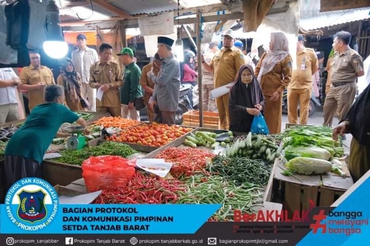 KUALATUNGKAL – Guna memastikan ketersediaan stok bahan pokok dan kenaikan harga serta kondusifitas menjelang Hari Raya Idul Adha 1444 Hijriah. Sekretaris Daerah Tanjab Barat Ir. H. Agus Sanusi M.Si bersama Dinas terkait meninjau sejumlah pasar yang ada di kota Kuala Tungkal. Selasa 27/6/2023.