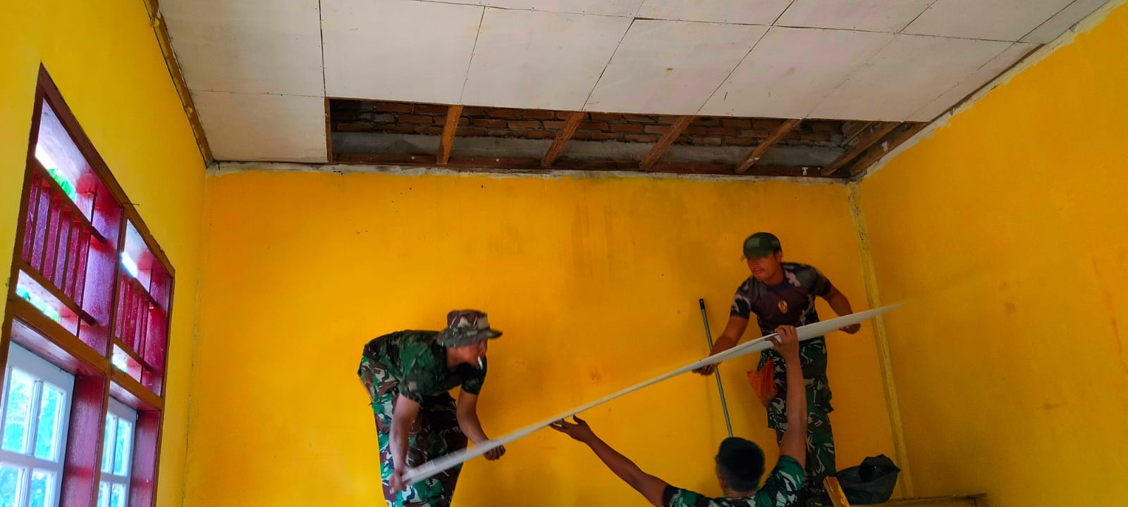 “Prajurit Satgas bekerja keras memasang satu persatu rangka plafon, dan mengecat SD 57/II pengerjaan yang telah dimulai semenjak Pra TMMD tersebut terus dikebut,” ucap Kapten Inf Wakhid Nurohim.(Tj)