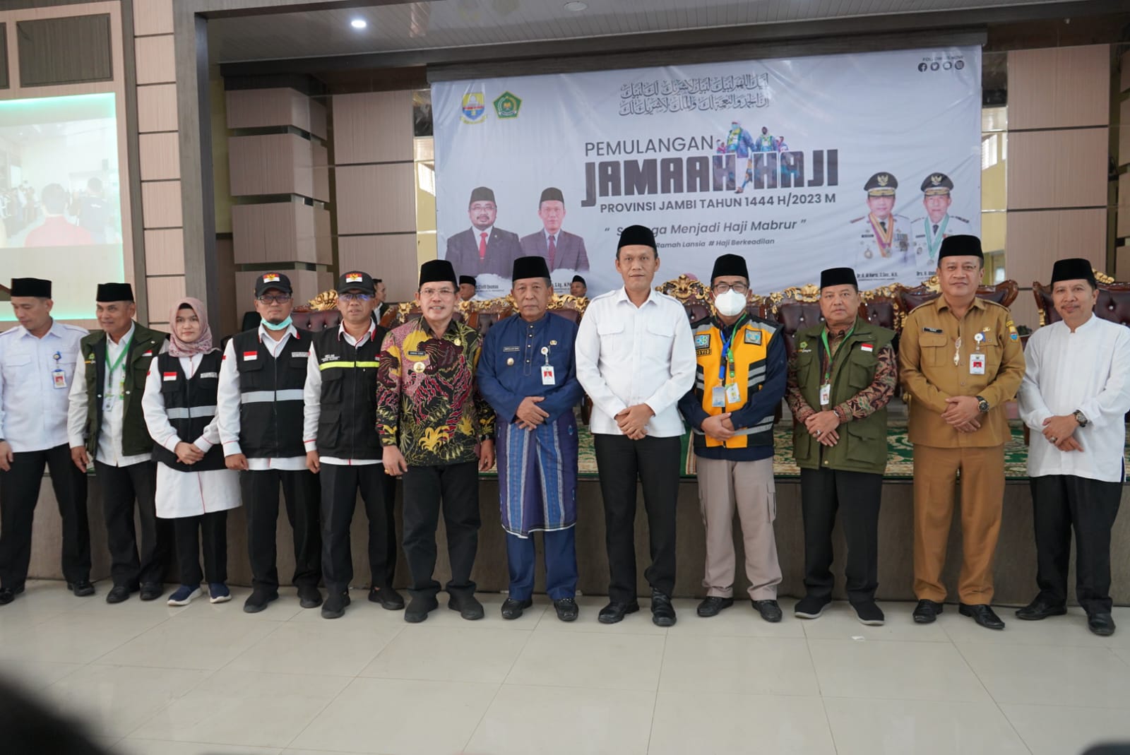 Jambi – Wakil Gubernur (Wagub) Jambi Drs. H. Abdullah Sani, M.P.di, mengharapkan kepada jemaah haji yang berangkat menjadi haji yang mabrur, memiliki komitmen menjaga keharmonisan hidup di tengah masyarakat dan menjadi teladan dalam kehidupan sehari-hari di keluarga, dan mempertahankan integritas moral yang telah diperoleh selama haji dan diamalkan sepanjang hayat. Harapan demikian disampaikan Wagub saat penyambutan kepulangan Jemaah Haji asal Provinsi Jambi kloter BTH 23 yang berasal dari Kabupaten Batanghari, Kabupaten Muaro Jambi dan Kota Sungai Penuh, setelah lebih dari 40 hari berada di tanah suci, Arab Saudi untuk menunaikan rukun Islam kelima. Penyambutan dilakukan di Asrama Haji Jambi, Senin (24/7/2023).