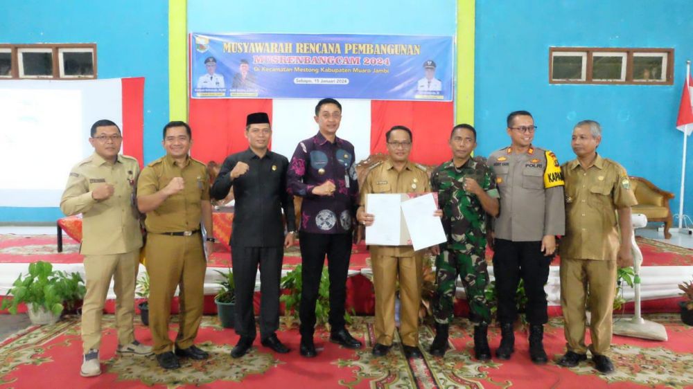 MUAROJAMBI-Penjabat (Pj) Bupati Muaro Jambi Bachyuni Deliansyah menghadiri kegiatan Musyawarah Perencanaan Pembangunan (Musrenbang) tingkat Kecamatan Mestong tahun 2024.