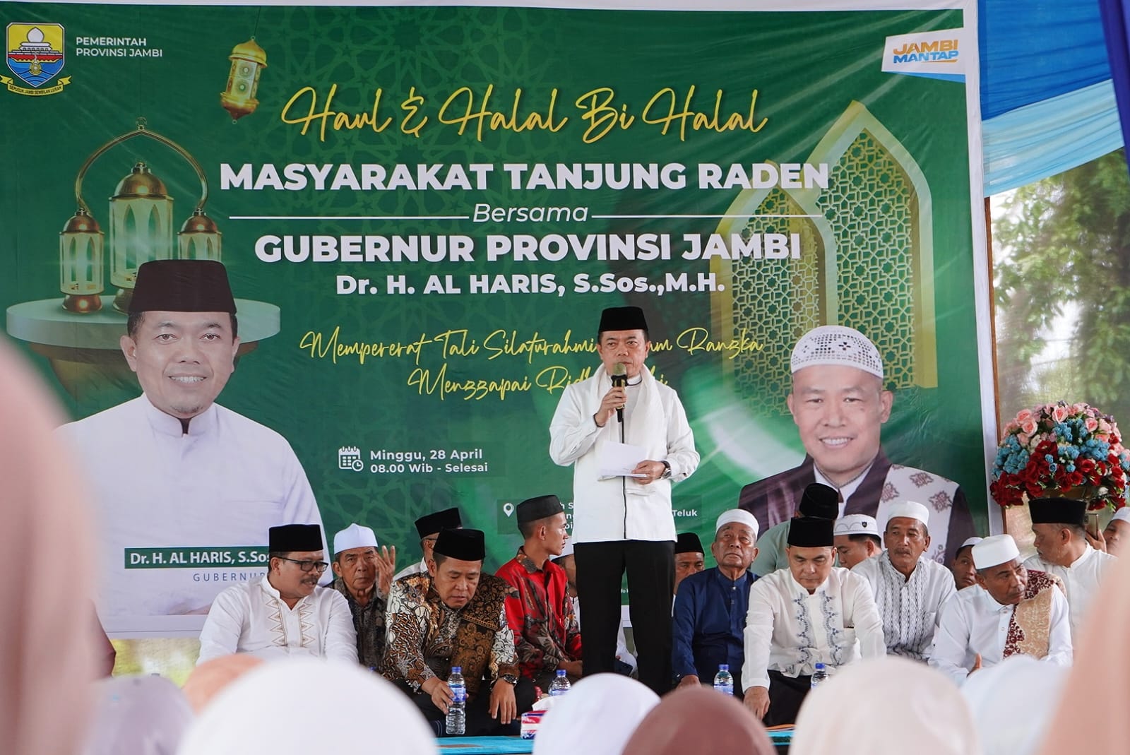 Sekoja – Gubernur Jambi Dr. H. Al Haris, S.Sos, MH, menyampaikan, Seberang Kota Jambi (Sekoja) sudah dikenal semenjak dulu adalah Kota Santri, karena seberang ini adalah pusatnya sekolah agama Islam, madrasah dan pondok pesantren tertua, banyak sekali santri-santri yang lahir dari Seberang Kota Jambi ini, sampai saat ini masih banyak melahirkan santri-santri yang memahami agama. Hal tersebut disampaikan Gubernur saat menghadiri Haul dan Halal Bihalal bersama masyarakat Tanjung Raden, bertempat di Madarasah Sa’adatul Ulya Kelurahan Tanjung Raden Kecamatan Danau Teluk Seberang Kota Jambi, Minggu (28/04/2024).
