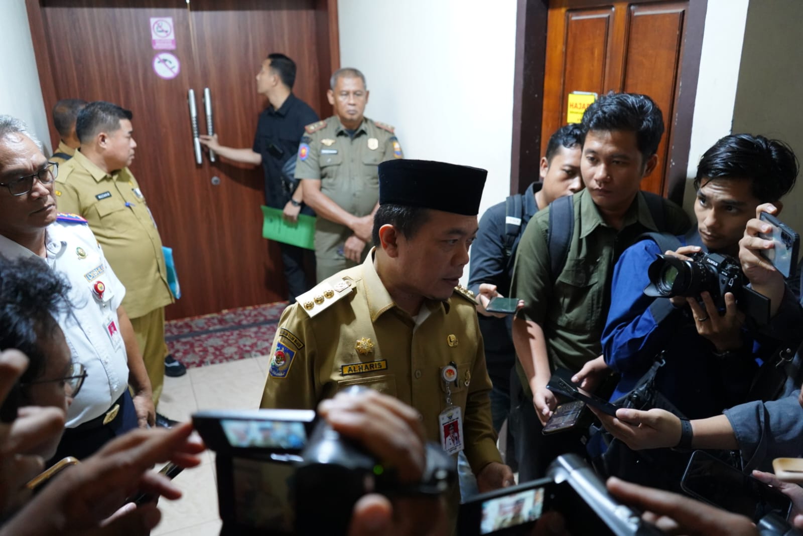 Jambi – Gubernur Jambi Dr. H. Al Haris, S.Sos., MH meminta kepada pengusaha untuk bertanggung jawab atas insiden tongkang angkutan batubara yang menabrak Fender (Tiang Pancang Baja) Jembatan Batanghari I sehingga menyebabkan kerusakan pada Fender jembatan tersebut. Hal ini diungkapkan Gubernur Al Haris pada Rapat Evaluasi Operasional Lalu Lintas Angkutan Batubara Melalui Sungai dan Mendorong pihak-pihak terkait untuk menerapkan peraturan yang berlaku guna meningkatkan keamanan, ketertiban dan kelancaran lalu lintas serta menjaga keamanan jembatan, bertempat di Ruang Pola Kantor Gubernur Jambi, Selasa (14/05/2024).