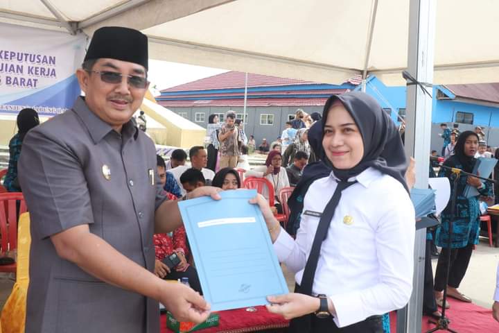 Kuala tungkal- Bupati Tanjung Jabung Barat, Drs. H. Anwar Sadat, M.Ag, menyerahkan secara langsung Surat Keputusan (SK) kepada 1467 Pegawai Pemerintah dengan Perjanjian Kerja (PPPK) formasi 2023, Rabu (15/5).