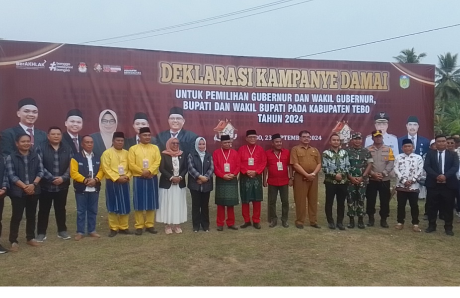 Sekda Tebo bersama unsur Forkopimda Kabupaten Tebo lainnya, juga turut menadatangani Deklarasi Kampanye Damai yang di buat oleh KPU Kabupaten Tebo. Selain kedua Pasangan Calon (Paslon) yang menandatangani.