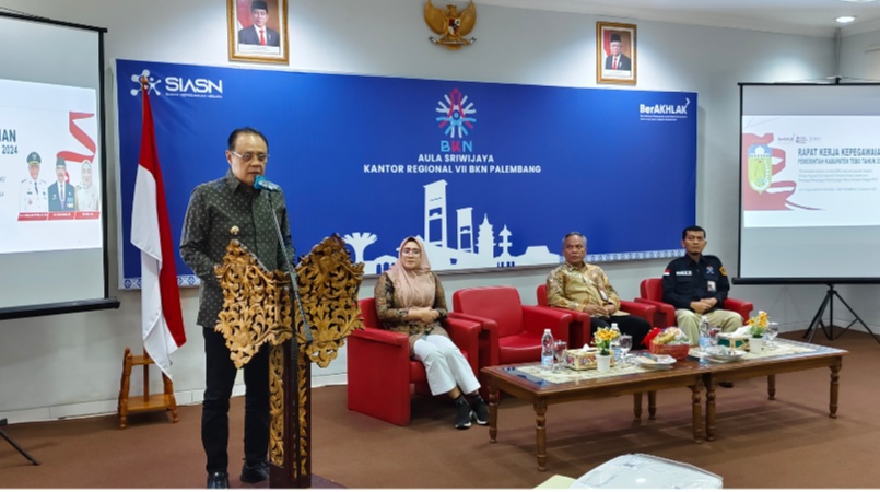 PALEMBANG – Penjabat Bupati Tebo Varial Adhi Putra secara resmi membuka rapat kepegawaian yang diadakan Badan Kepegawaian Pengembangan Sumber Daya Manusia (BKPSDM) Kabupaten Tebo, yang dilaksanakan di kantor Regional VII BKN Palembang. Pada Selasa (24/09/2024).