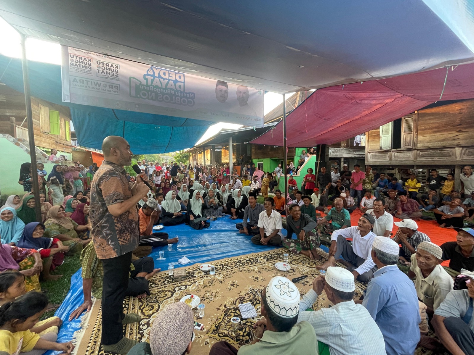 Bungo – Antusiasme masyarakat tak terbendung saat Calon Bupati Bungo, H Dedy Putra, S.H., M.Kn hadir dalam pertemuan tatap muka dan dialog dengan warga di Dusun Teluk Pandak, Kecamatan Tanah Sepenggal.