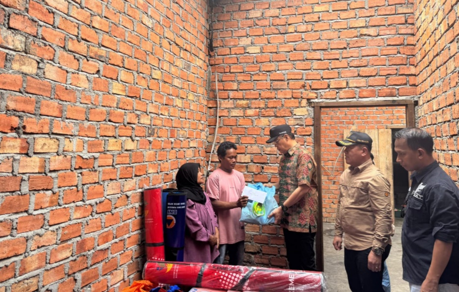 Dalam memberikan bantuan, Penjabat Bupati Tebo Varial Adhi Putra didampingi Tim BPBD, Dinas Sosial, Dinas Kesehatan (Dinkes) Tebo.