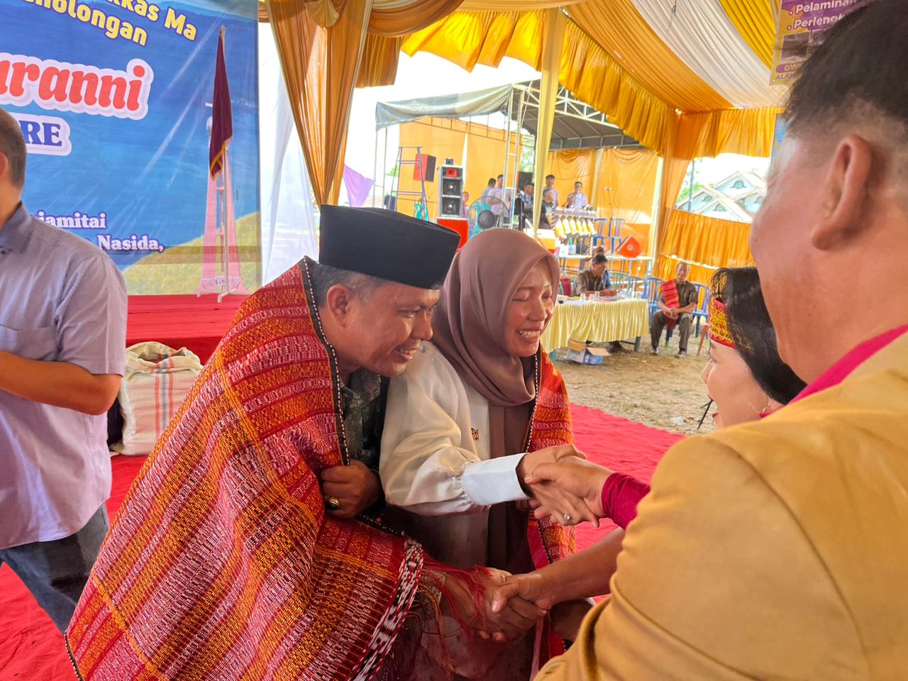 TEBO – Pasangan Calon Bupati, dan Wakil Bupati, koalisi Tebo Maju, penuhi undangan Pesta Perak Pomparanni Turnip Boru Bere Ibebere se-Bungo-Tebo di Kelurahan Sarana Agung Kecamatan Rimbo Bujang.