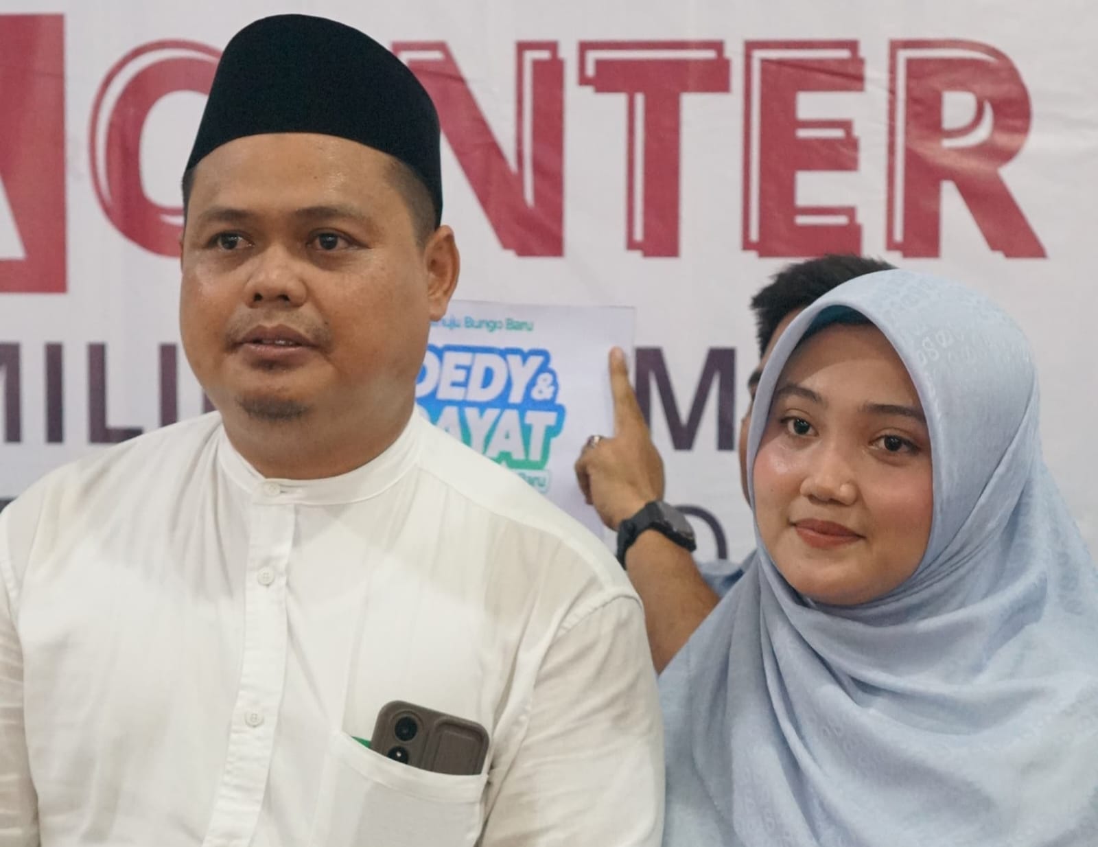 MUARA BUNGO – Ny Suci Ramadhani Isteri Calon Wakil Bupati Bungo, Ustadz Tri Wahyu Hidayat menghadiri silaturrahmi dengan warga Jaya Setia dan keluarga Minang. Ibu dari dua anak ini memiliki kepribadian yang halus dan sopan.