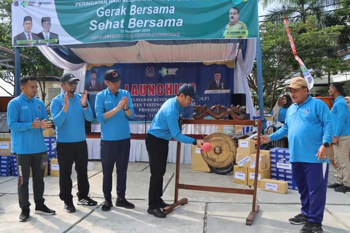 Kuala Tungkal – Penjabat Sementara (Pjs) Bupati Tanjung Jabung Barat, dr. H. MHD. Fery Kusnadi, Sp. OG., meluncurkan program Integrasi Layanan Primer (ILP) dalam rangka peringatan Hari Kesehatan Nasional (HKN) di halaman Kantor Dinas Kesehatan Kabupaten Tanjab Barat, Senin (11/11). Acara yang diiringi dengan kegiatan senam bersama ini menandai komitmen pemerintah daerah dalam meningkatkan kualitas kesehatan masyarakat.