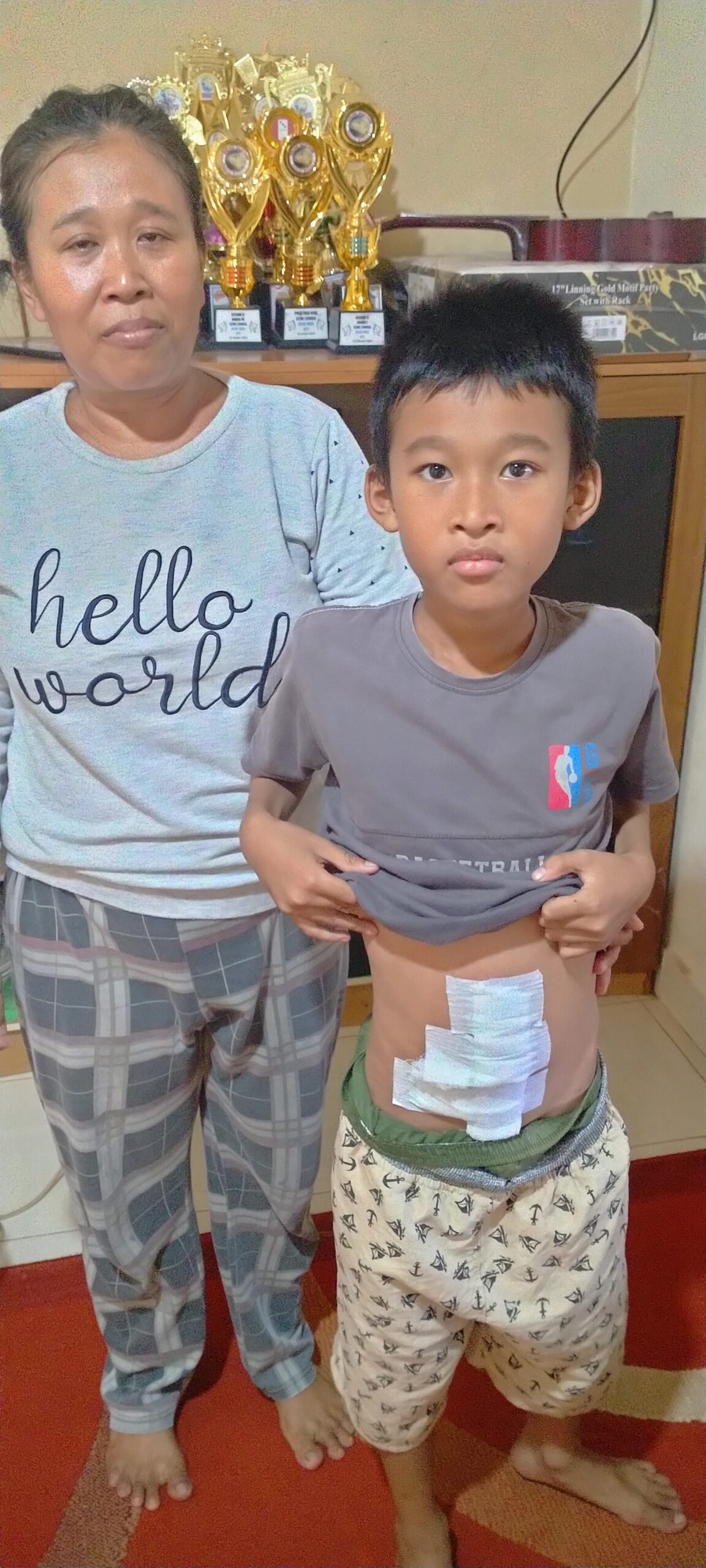 Patih yang di dampingi orng tuanya mengatakan yg sering membuli dan mukul serta mecubitnya yang mengakibatkan sakit perut pihak keluarga langsung membawanya ke rumah sakit setelah di periksa patih di diaknosa penggumpalan darah di perut nya yang harus langsung di tindak operasi di rumah sakit DKT.