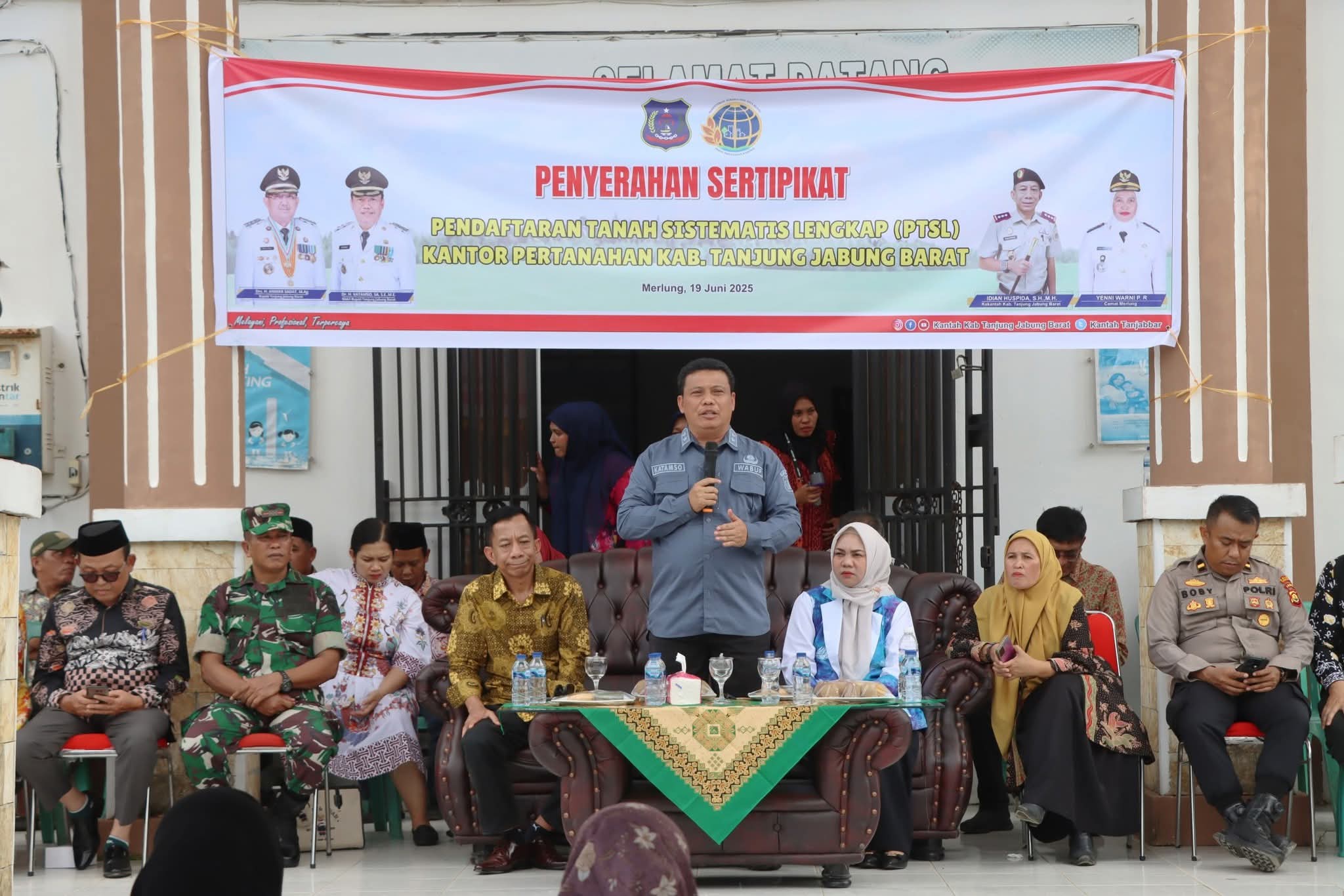 Penyerahan sertifikat berlangsung di Kantor Camat Merlung dan disambut antusias oleh warga penerima. Turut hadir dalam kegiatan tersebut Kepala BPN Tanjung Jabung Barat, Staf Ahli Bidang Pemerintahan, Camat Merlung, unsur Forkopimcam, serta tokoh masyarakat setempat.