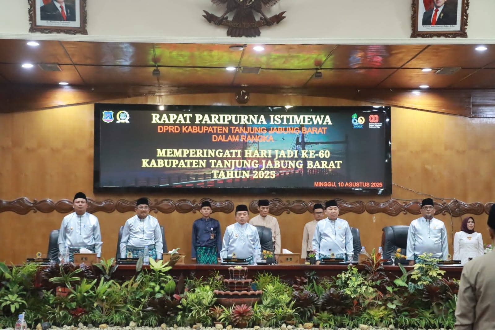 Kuala Tungkal – Puncak peringatan Hari Jadi Kabupaten Tanjung Jabung Barat ke-60 ditandai dengan digelarnya Rapat Paripurna Istimewa oleh DPRD Kabupaten Tanjung Jabung Barat, Minggu (10/8).