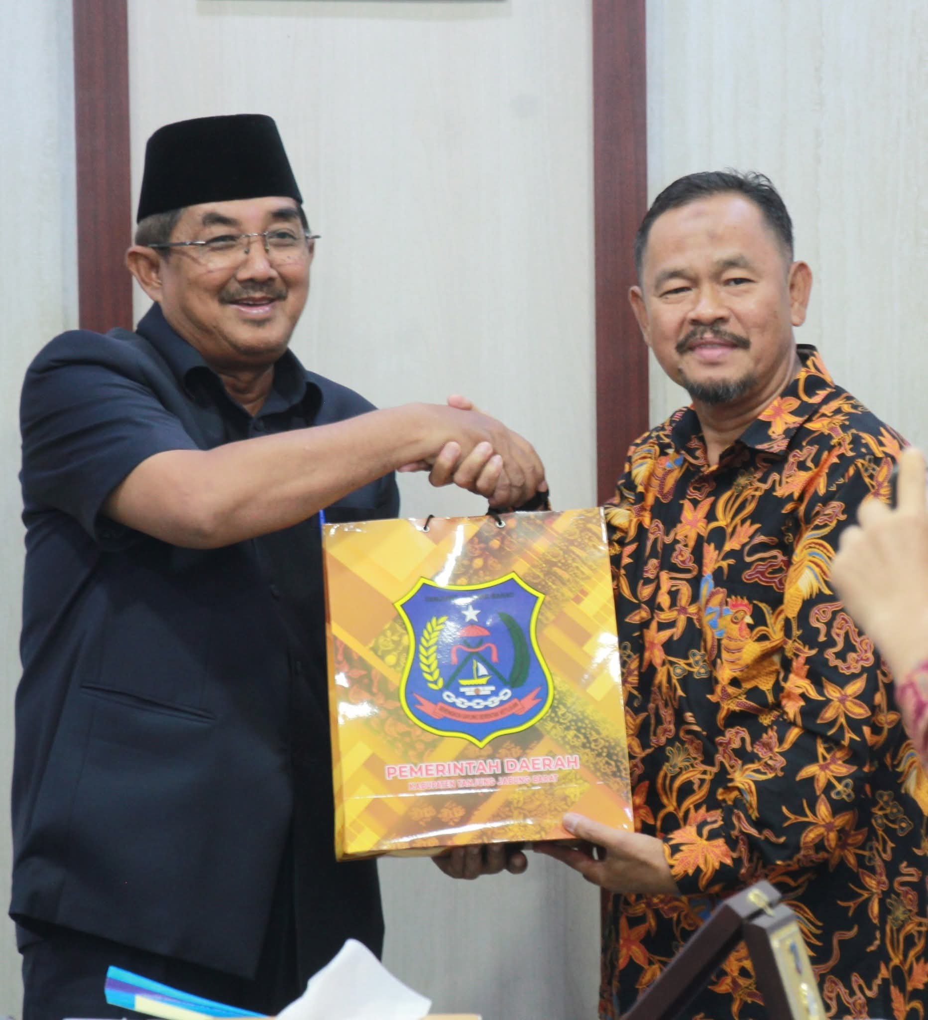 Kuala Tungkal – Bupati Tanjung Jabung Barat, Drs. H. Anwar Sadat, M.Ag., menerima audiensi sekaligus silaturahmi Kepala Balai Bahasa Provinsi Jambi, Drs. Muhammad Muis, M.Hum bersama tim, terkait sosialisasi Peraturan Menteri Pendidikan Dasar dan Menengah Nomor 2 Tahun 2025 tentang Pedoman Pengawasan Penggunaan Bahasa Indonesia, di Ruang Rapat Bupati, Rabu (27/08).