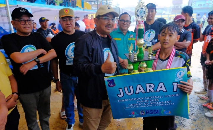 Kuala Tungkal – Bupati Tanjung Jabung Barat, Drs. H. Anwar Sadat, M.Ag., menutup sekaligus menyerahkan piala kepada para pemenang Kompetisi Jambi School Football League (JSFL) 2025, Jumat (28/11).